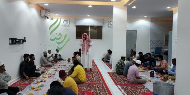 أقامت جمعية الدعوة و الإرشاد و توعية الجاليات بالهدار الكلمة في مشروع الإفطار الرمضاني للجاليات العربية و غير العربية بعنوان” فضل العشر الأواخر من رمضان” قبل الإفطار. الملقي: فهيد بن عبد الله الجمعة المترجم: عبدالرب محمد إسلام (داعية الجمعية) المكان: مشروع إفطار صائمين في مسجد الفلاح عدد المستفيدين:115