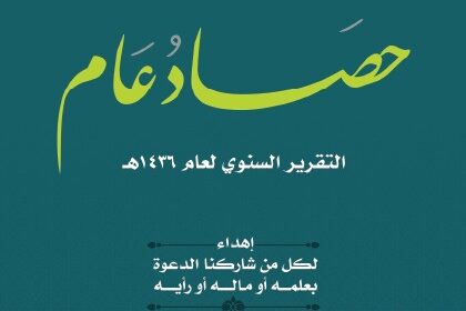 أصدر المكتب التعاوني للدعوة والإرشاد وتوعية الجاليات في الهدار تقريره السنوي “حصاد عام” لعام 1436هـ. حيث شمل التقرير على أهم البرامج المقامة في العام الماضي.