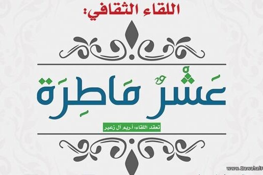 ضمـن برنامـج ملتقـــى “هــدايـــة النسـائــي” يتشـرف المكتــب التعاونـي للدعـوة والإرشــاد وتوعيــة الجاليـات في الهـدار بالتعـاون مع “جمعية بـشـــرى النسائيـة” بدعوتكن لحضور اللقاء الثقافي بعنوان “عشر ماطرة” تعقد اللقاء أ. ريم آل زعير، وذلك يوم الأربعاء الموافق 1437/12/6هـ في صالة المكتب التعاوني بالهدار كما يصاحب اللقاء مجموعة من الفعاليات المتنوعة.
