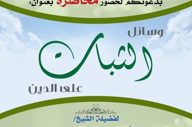 يقيم المكتب التعاوني للدعوة والإرشاد وتوعية الجاليات في الهدار محاضرة للشيخ/ عبدالله بن مبارك الدوسري، بعنوان (وسائل الثبات على الدين) وذلك يوم الأحد الموافق 19-3-1438هـ في مسجد الفلاح.