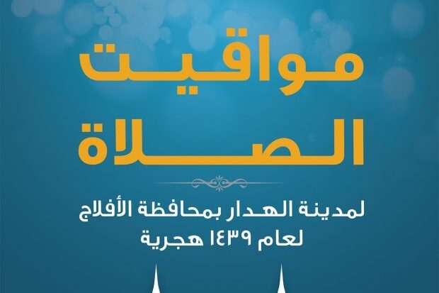 قام المكتب التعاوني للدعوة والإرشاد وتوعية الجاليات في الهدار بتوزيع مواقيت الصلاة لعام 1439هـ حسب إحداثيات الهدار على كافة مساجد وجوامع الهدار والدوائر الحكومية.حيث شمل التوزيع (72) مسجداً، و (15) دائرة حكومية. للتحميل النسخة الإلكترونية من خلال الرابط التالي: