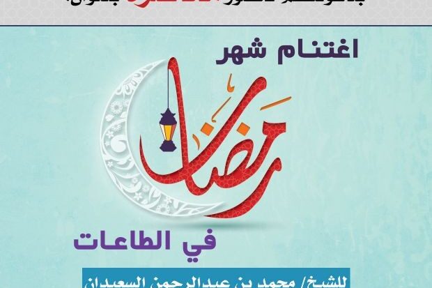 يقيم المكتب التعاوني للدعوة والإرشاد وتوعية الجاليات في الهدار محاضرة (اغتنام شهر رمضان في الطاعات) للفضيلة الشيخ/ محمد بن عبدالرحمن السعيدان وذلك بعد مغرب يوم السبت الموافق 26-8-1439هـ في مسجد الفلاح.