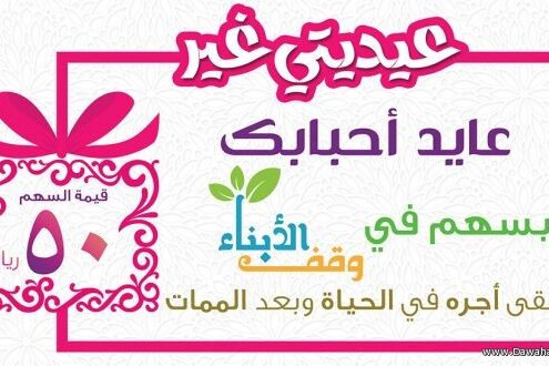 عيديتي غير عايد أحبابك بسهم في وقف الأبناء قيمة السهم 50 ريال حصل على بطاقة معايدة تهديها لمن تحب