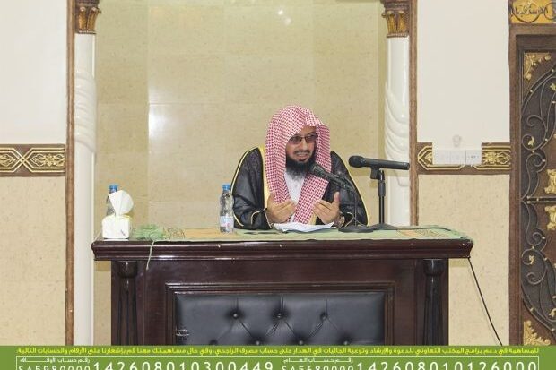 أقامت جمعية الدعوة و الإرشاد و توعية الجاليات بالهدار الدرس الشهري للجاليات في كتاب” منهج السالكين و توضيح الفقه في الدين” للعلامة الشيخ/ عبد الرحمن بن ناصر السعدي رحمه الله ضمن برامج الجاليات برعاية مؤسسة سليمان بن عبد العزيز الراجحي الخيرية. الملقي: فهيد بن عبد الله بن فهيد آل جمعة المترجمم: عبدالرب محمد إسلام (…