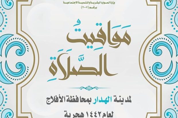 قام المكتب التعاوني للدعوة والإرشاد وتوعية الجاليات في الهدار بتوزيع مواقيت الصلاة لعام 1438هـ حسب إحداثيات الهدار على كافة مساجد وجوامع الهدار والدوائر الحكومية.حيث شمل التوزيع (72) مسجداً، و (15) دائرة حكومية. للتحميل النسخة الإلكترونية من خلال الرابط التالي: