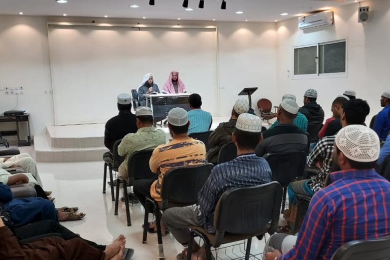 أقامت جمعية الدعوة و الإرشاد و توعية الجاليات بالهدار الدرس الشهري للجاليات في كتاب” منهج السالكين و توضيح الفقه في الدين” للعلامة الشيخ/ عبد الرحمن بن ناصر السعدي رحمه الله الملقي: فهيد بن عبد الله بن فهيد آل جمعة المترجمم: عبدالرب محمد إسلام ( داعية الجمعية) رقم الفسح: 289325 رقم الدرس: 14 عدد الحضور: 50