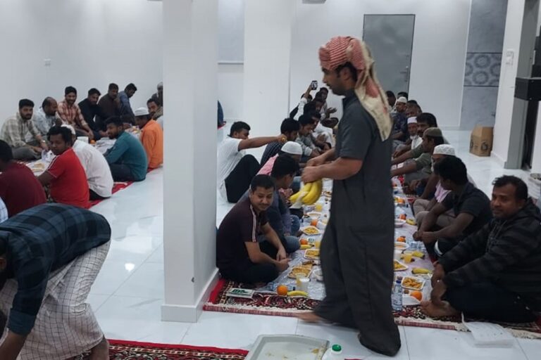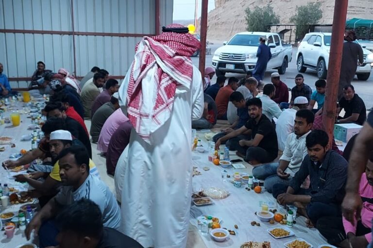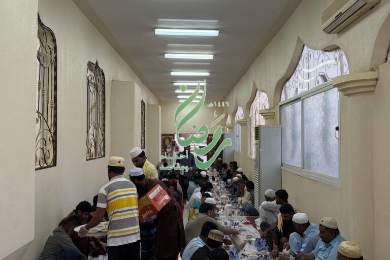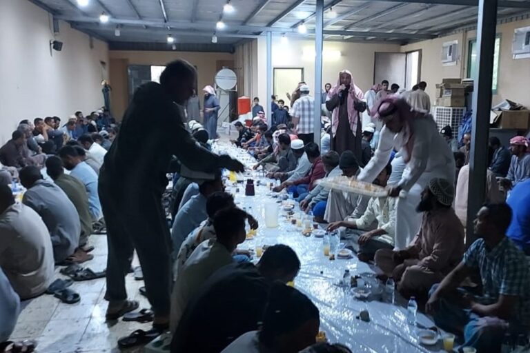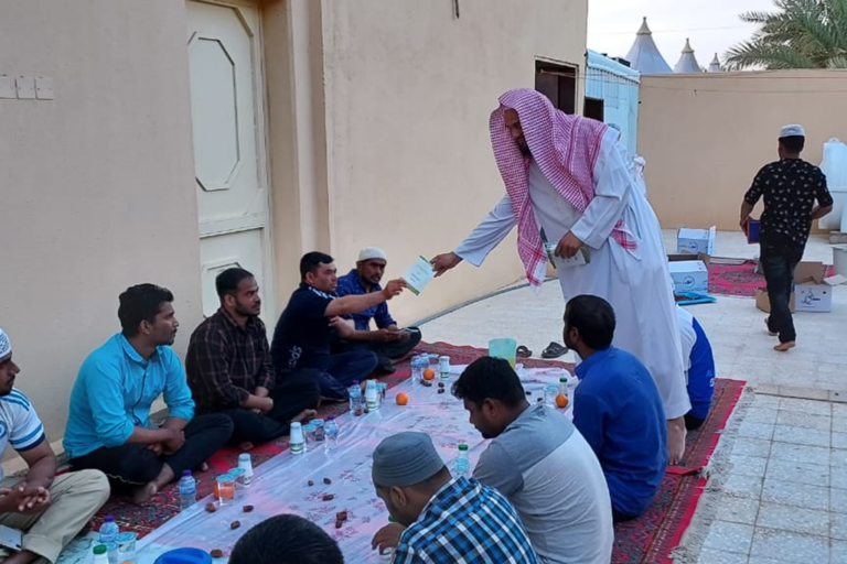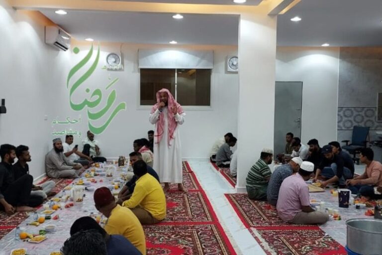 أقامت جمعية الدعوة و الإرشاد و توعية الجاليات بالهدار الكلمة في مشروع الإفطار الرمضاني للجاليات العربية و غير العربية بعنوان” فضل العشر الأواخر من رمضان” قبل الإفطار. الملقي: فهيد بن عبد الله الجمعة المترجم: عبدالرب محمد إسلام (داعية الجمعية) المكان: مشروع إفطار صائمين في مسجد الفلاح عدد المستفيدين:115