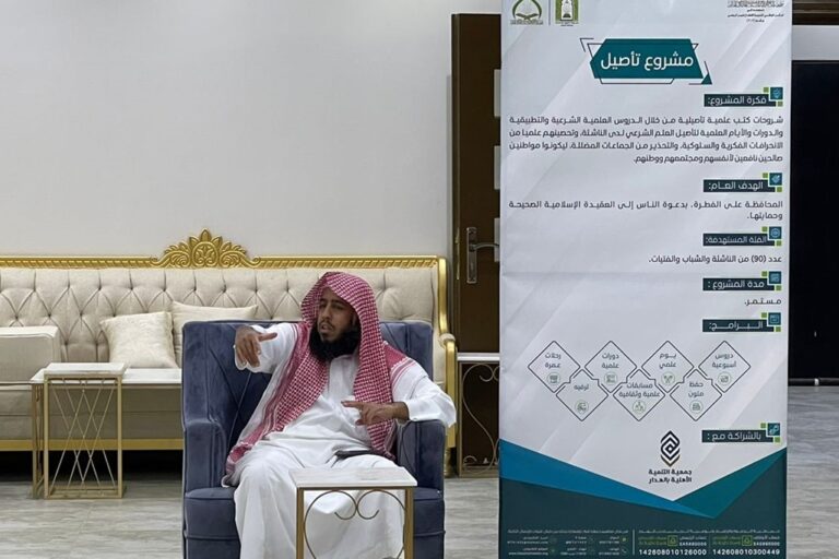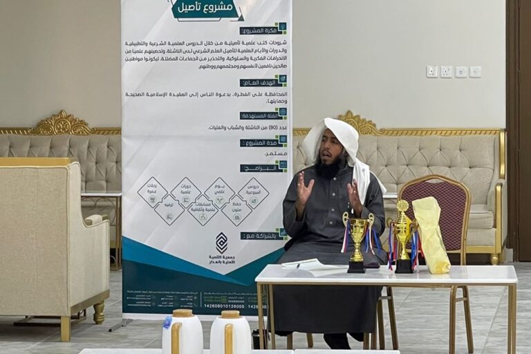 قامت جمعية الدعوة و الإرشاد و توعية الجاليات بالهدار الدرس الأسبوعي في كتاب ” الملخص الفقهي” ضمن برنامج تأصيل الملقي: فهيد بن عبد الله بن فهيد آل جمعة رقم الفسح: 511332 عدد الحضور:40
