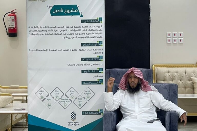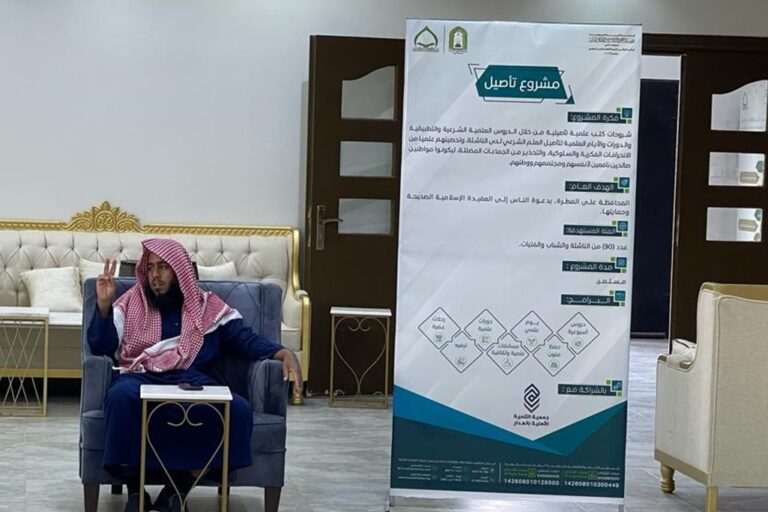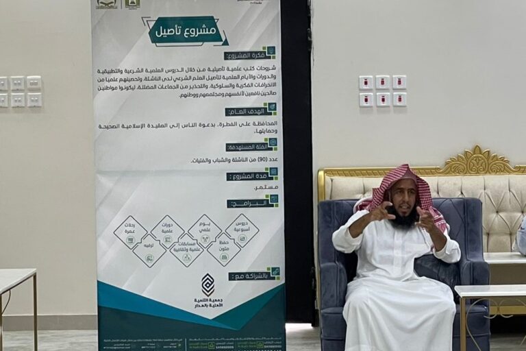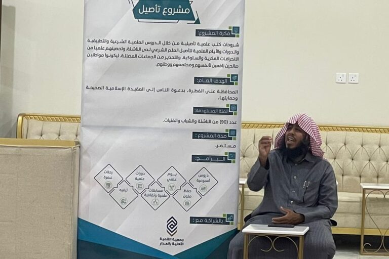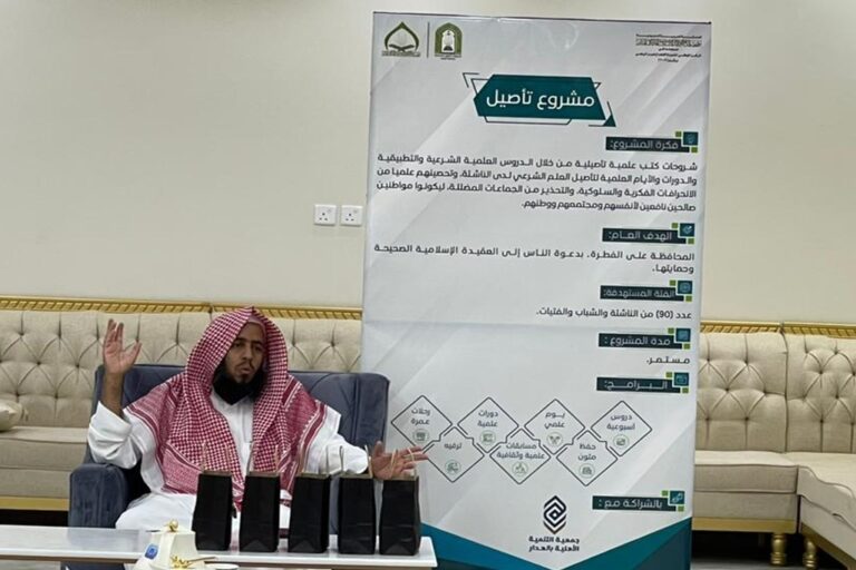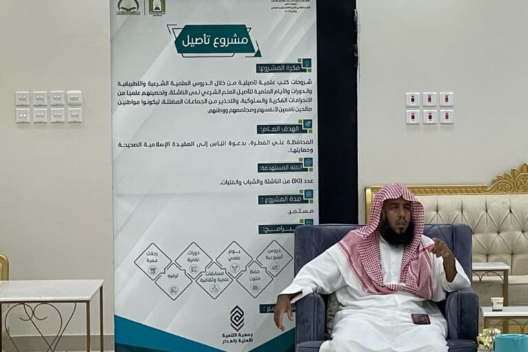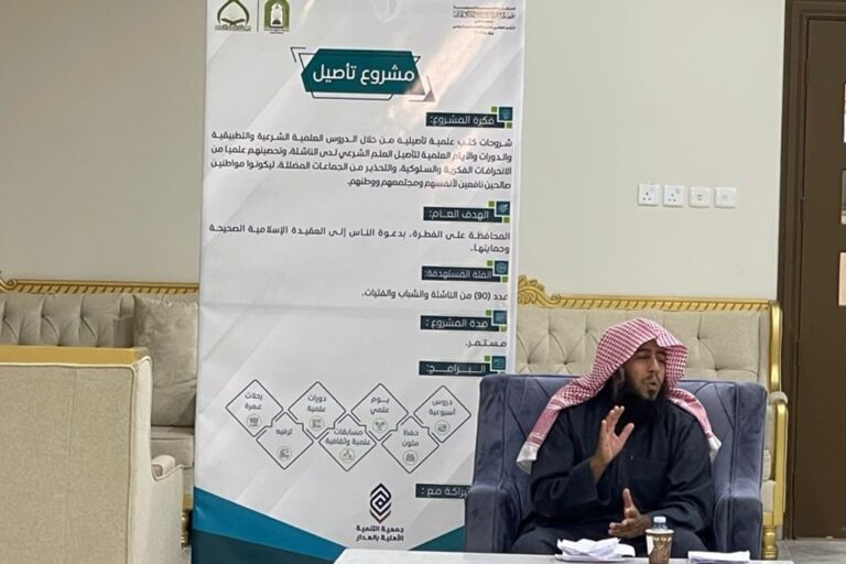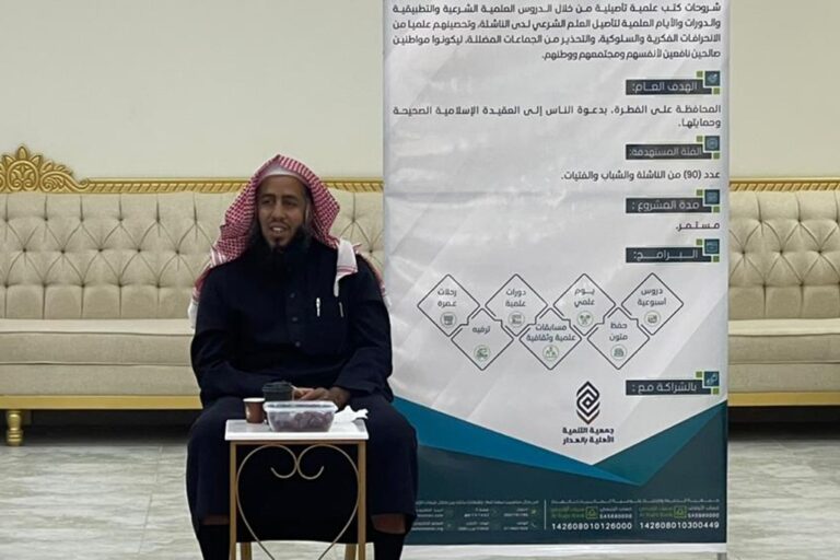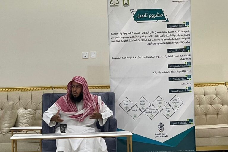 أقامت جمعية الدعوة بالهدار الدرس الأسبوعي في ” شرح كتاب تفسير ابن سعدي ” ضمن مشروع أكاديمية تأصيل الشرعية الملقي: فهيد بن عبد الله بن فهيد آل جمعة رقم الفسح: 745534 عدد الحضور: 34