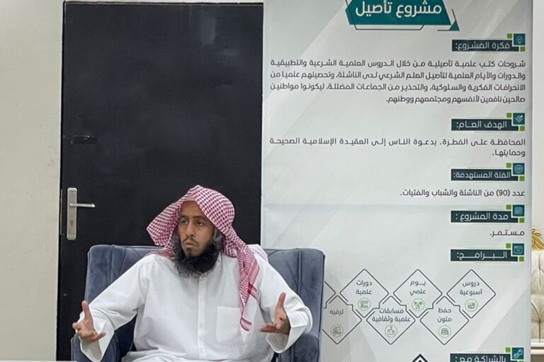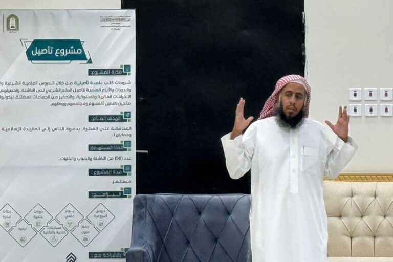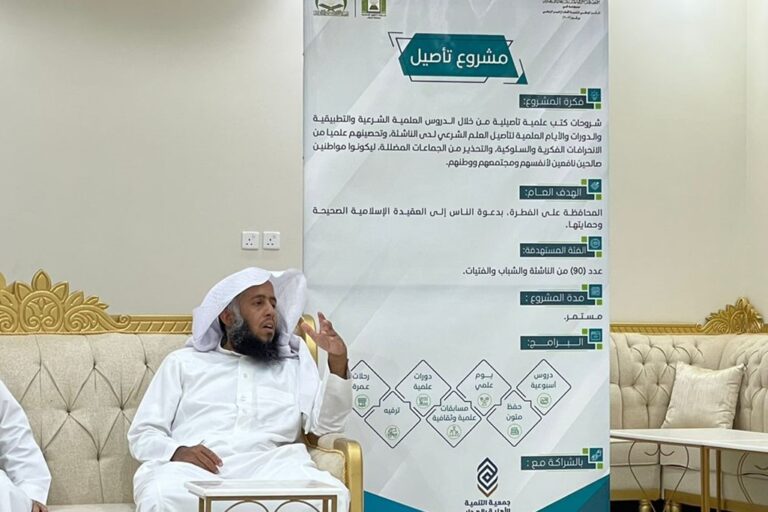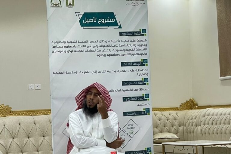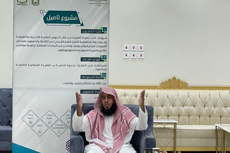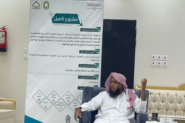 أقامت جمعية الدعوة بالهدار الدرس الأسبوعي في ” شرح كتاب تفسير ابن سعدي ” ضمن مشروع أكاديمية تأصيل الشرعية الملقي: فهيد بن عبد الله بن فهيد آل جمعة رقم الفسح: 745530 عدد الحضور:22
