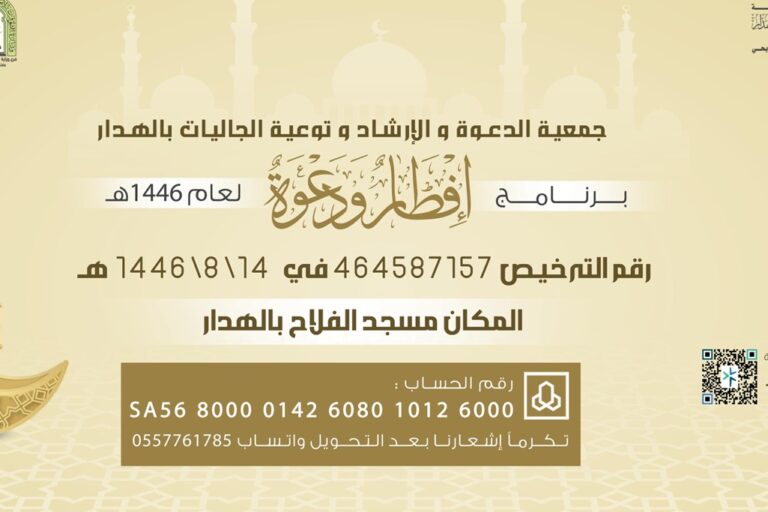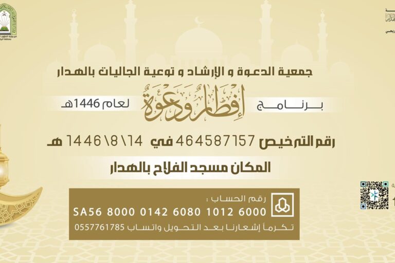 بدعم من مؤسسة الراجحي الخيرية يقيم المكتب التعاوني للدعوة والإرشاد وتوعية الجاليات في الهدار برنامج “المسجد الرمضاني الثالث” وذلك في جوامع ومساجد الأحياء، وهو عبارة عن برامج دعوية وتربوية لأبناء الحي، خلال شهر رمضان تتركز على المتابعة المستمرة في أداء الصلوات الخمس مع الجماعة والانضباط داخل المسجد، وتلاوة وحفظ أجزاء من القرآن الكريم، وحضور مجالس…