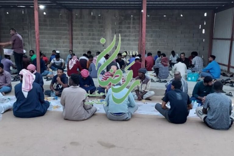 أقامت جمعية الدعوة و الإرشاد و توعية الجاليات بالهدار الزيارة في مشروع الإفطار الرمضاني للجاليات العربية و غير العربية لتوزيع الكتب و المصاحف العربية و المترجمة. المكان: مشروع إفطار صائمين في البلدية عدد المستفيدين:115
