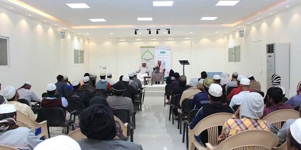 كرم المكتب التعاوني للدعوة والإرشاد وتوعية الجاليات في الهدار ممثلاً بقسم الجاليات الفائزين في مسابقة كتاب (مسائل مهمة في العقيدة الإسلامية)، وبدأ الحفل بتلاوة من كتاب الله تلاها الأخ/ كبير حسين من الجالية البنقالية ثم القى مدير المكتب أ/ خلف بن حسن آل وحيد كلمة بهذه المناسبة، وبلغ عدد الفائزين (21) من الجاليات الغير عربية.