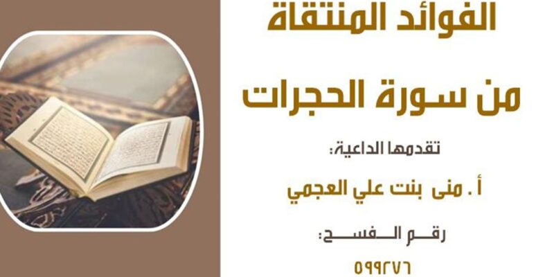جمعية الدعوة تقيم محاضرة بعنوان ” الفوائد المنتقاة من سورة الحجرات ” للنساء