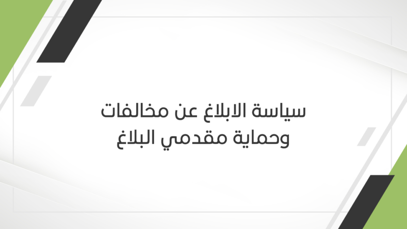 سياسة الابلاغ عن مخالفات وحماية مقدمي البلاغ اللوائح والسياساتبواسطة غزيل عمرالأثنين 17 جمادى الآخرة 1447هـسياسة الابلاغ عن مخالفات وحماية مقدمي البلاغ