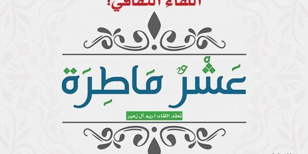ضمـن برنامـج ملتقـــى “هــدايـــة النسـائــي” يتشـرف المكتــب التعاونـي للدعـوة والإرشــاد وتوعيــة الجاليـات في الهـدار بالتعـاون مع “جمعية بـشـــرى النسائيـة” بدعوتكن لحضور اللقاء الثقافي بعنوان “عشر ماطرة” تعقد اللقاء أ. ريم آل زعير، وذلك يوم الأربعاء الموافق 1437/12/6هـ في صالة المكتب التعاوني بالهدار كما يصاحب اللقاء مجموعة من الفعاليات المتنوعة.