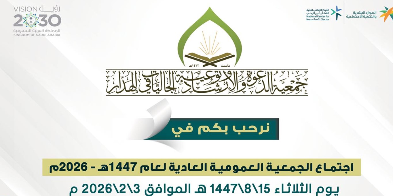 عقدت جمعية الدعوة والإرشاد وتوعية الجاليات بالهدار الجمعية العمومية العادية يوم الثلاثاء 15/8/1447 الموافق 3/2/2026 وذلك بقاعة الجمعية