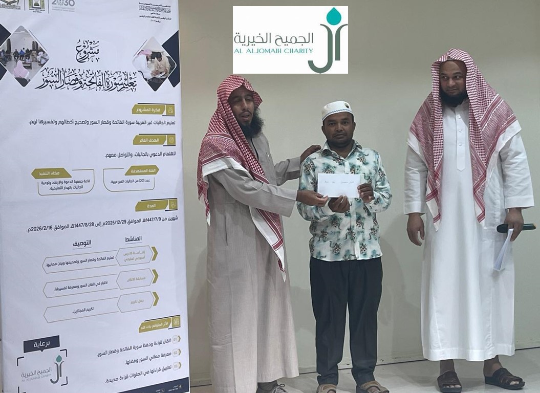 أقامت جمعية الدعوة و الإرشاد و توعية الجاليات بالهدار الحفل التكريمي للمشاركين في مشروع: تعليم سورة الفاتحة و قصار السور” للجاليات ضمن برامج” جئتكم فعلموني” برعاية مؤسسة ال جميح الخيرية