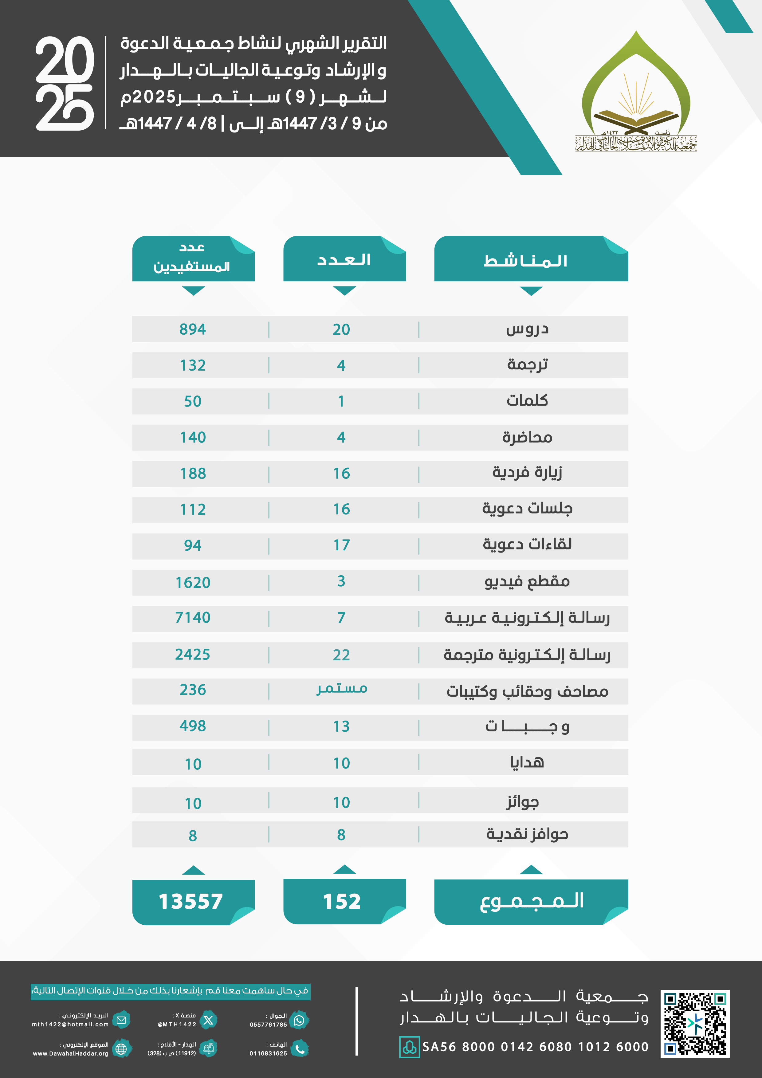 نوفمبر22025التقارير الشهرية مواضيع ذات صلةشهر نوفمبر 2025مالأثنين 10 جمادى الآخرة 1447هـأكتوبر 2025مالثلاثاء 4 جمادى الآخرة 1447هـأغسطس 2025مالثلاثاء 1 ربيع الثاني 1447هـيوليو 2025مالأحد 16 صفر 1447هـ يونيو 2025مالأحد 11 محرم 1447هـالتقرير الشهري | مايو 2025مالسبت 18 ذو الحجة 1446هـ