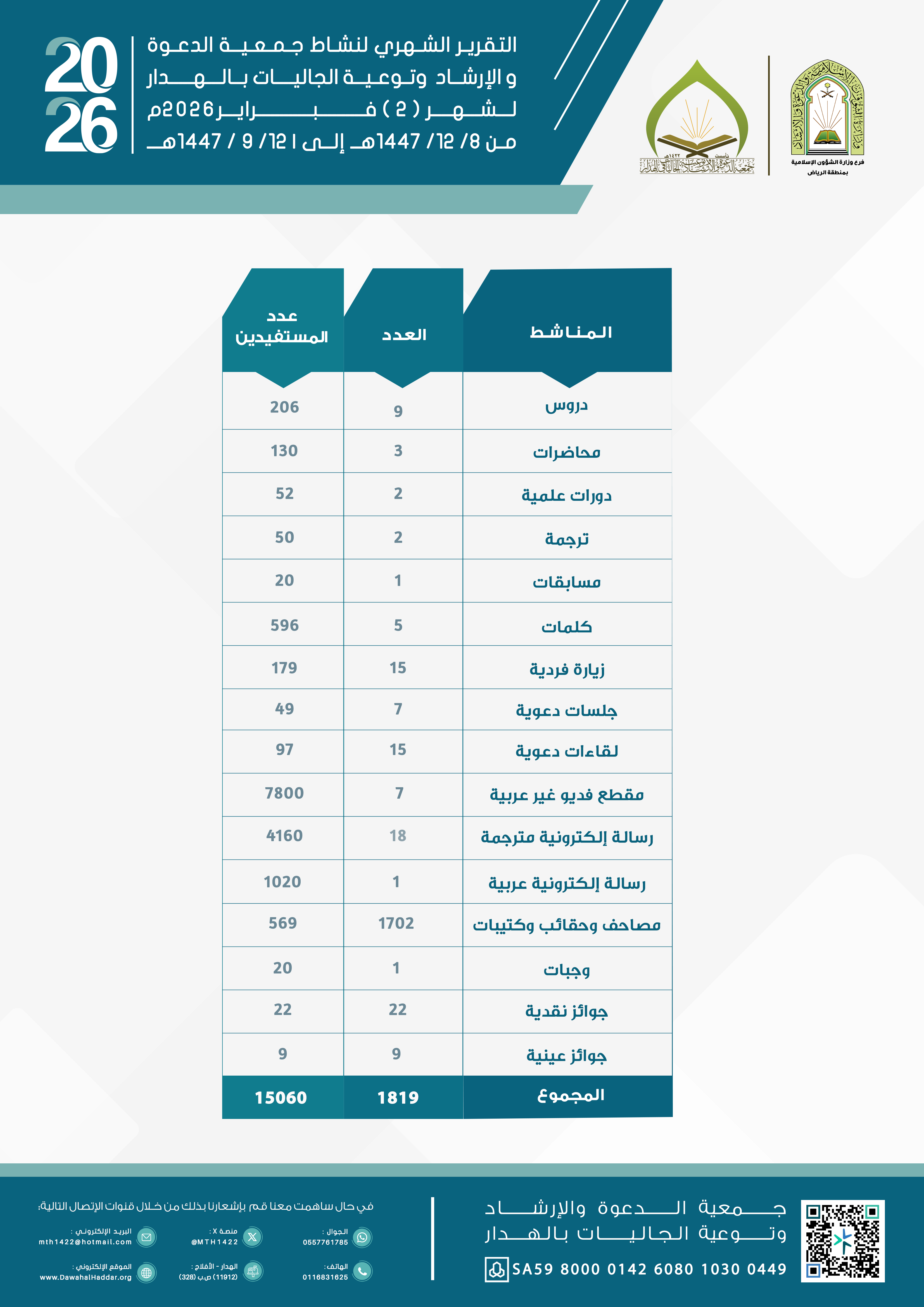 مارس162026التقارير الشهرية مواضيع ذات صلةيناير 2026 مالأربعاء 16 شعبان 1447هـشهر ديسمبر 2025مالسبت 14 رجب 1447هـشهر نوفمبر 2025مالأثنين 10 جمادى الآخرة 1447هـأكتوبر 2025مالثلاثاء 4 جمادى الآخرة 1447هـسبتمبر 2025مالأحد 11 جمادى الأولى 1447هـأغسطس 2025مالثلاثاء 1 ربيع الثاني 1447هـ