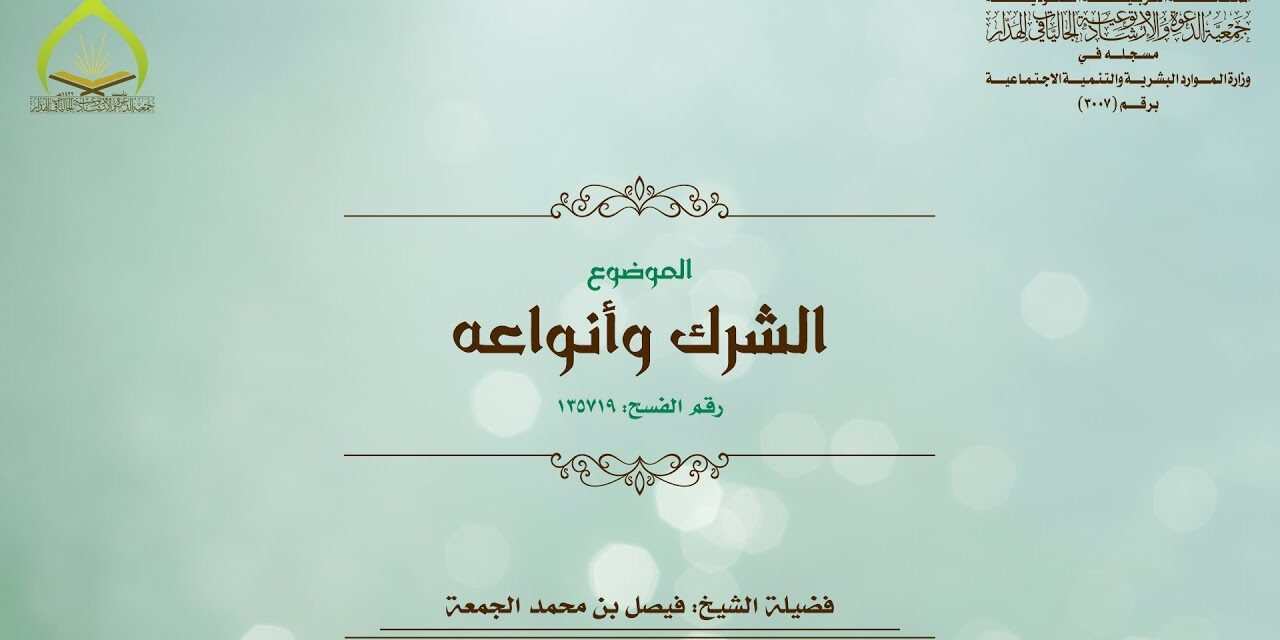 مارس252021دروس في العقيدة عنوان الدرس: الشرك وأنواعه الملقي: فيصل بن محمد الجمعة مواضيع ذات صلةتعظيم التوحيدالثلاثاء 20 شوال 1442هـأضرار البدعالسبت 29 رجب 1442هـمعنى لا إله إلا اللهالخميس 27 رجب 1442هـ