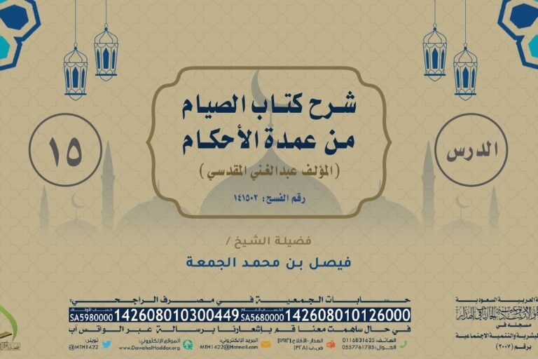 الدرس 15 | شرح كتاب الصيام من عمدة الأحكام شرح كتاب الصيام من عمدة الأحكامبواسطة إبراهيم الدوسريالسبت 19 رمضان 1442هـ مشاهد