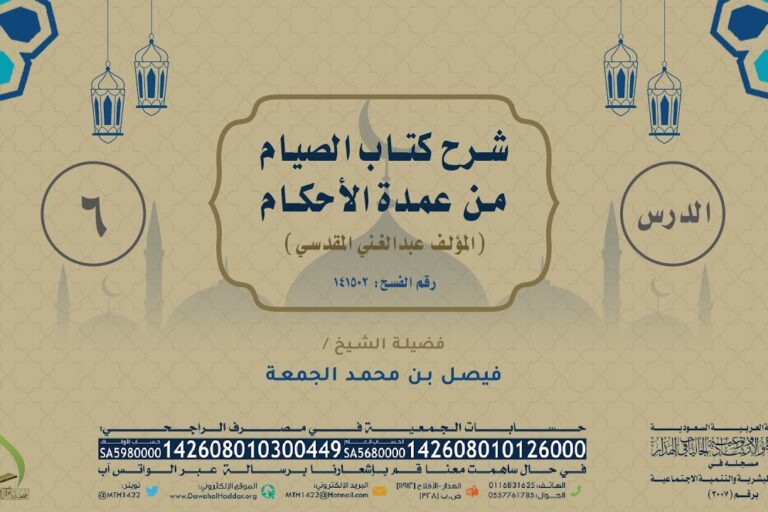 الدرس 6 | شرح كتاب الصيام من عمدة الأحكام شرح كتاب الصيام من عمدة الأحكامبواسطة إبراهيم الدوسريالخميس 10 رمضان 1442هـ مشاهد